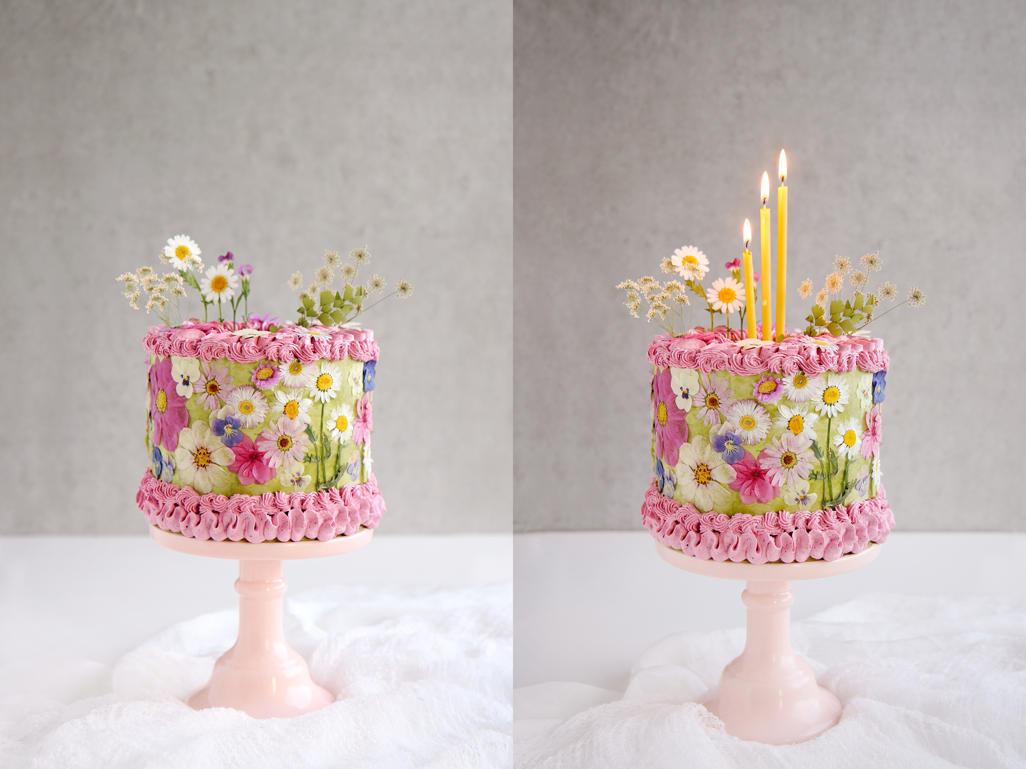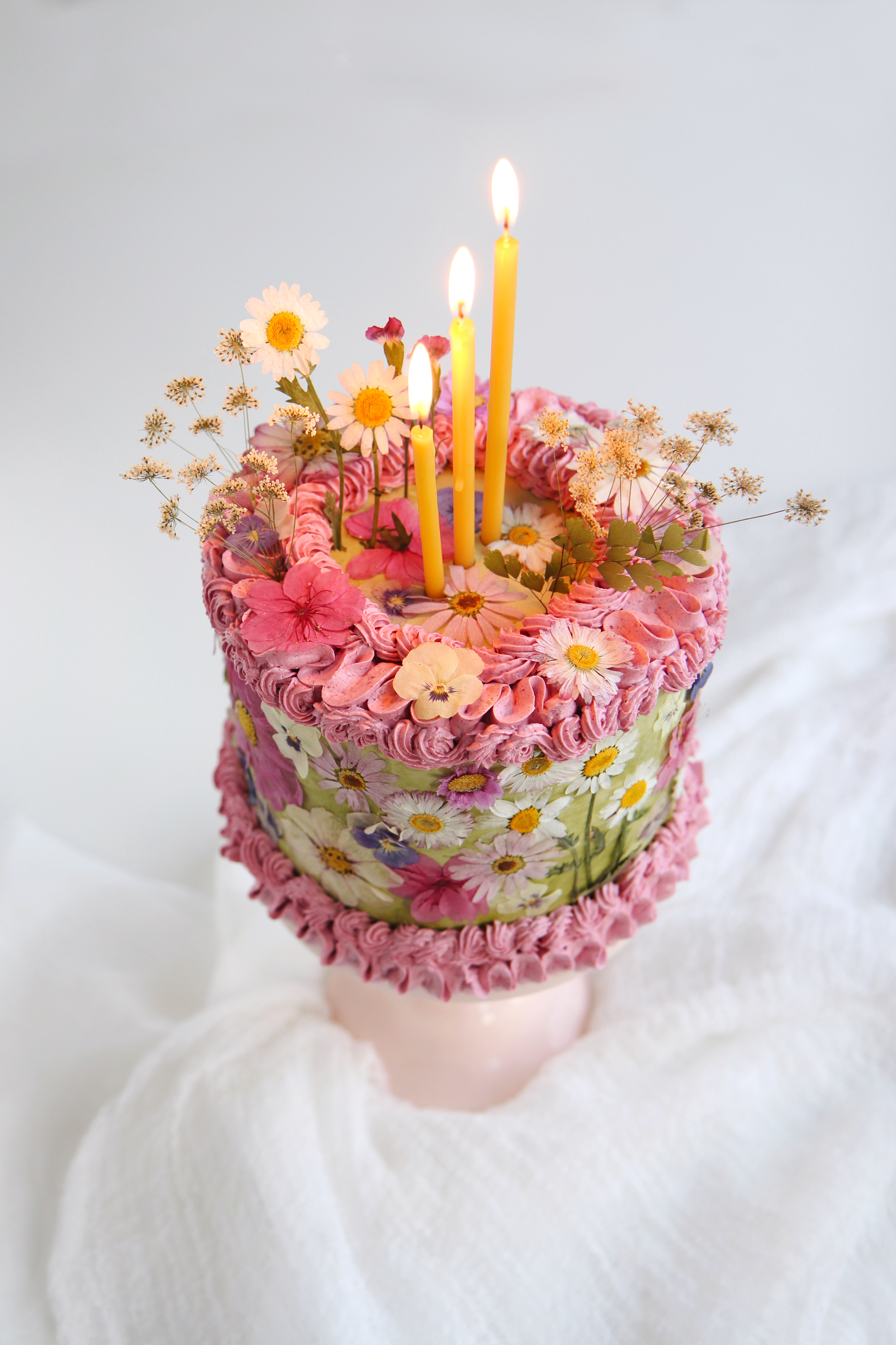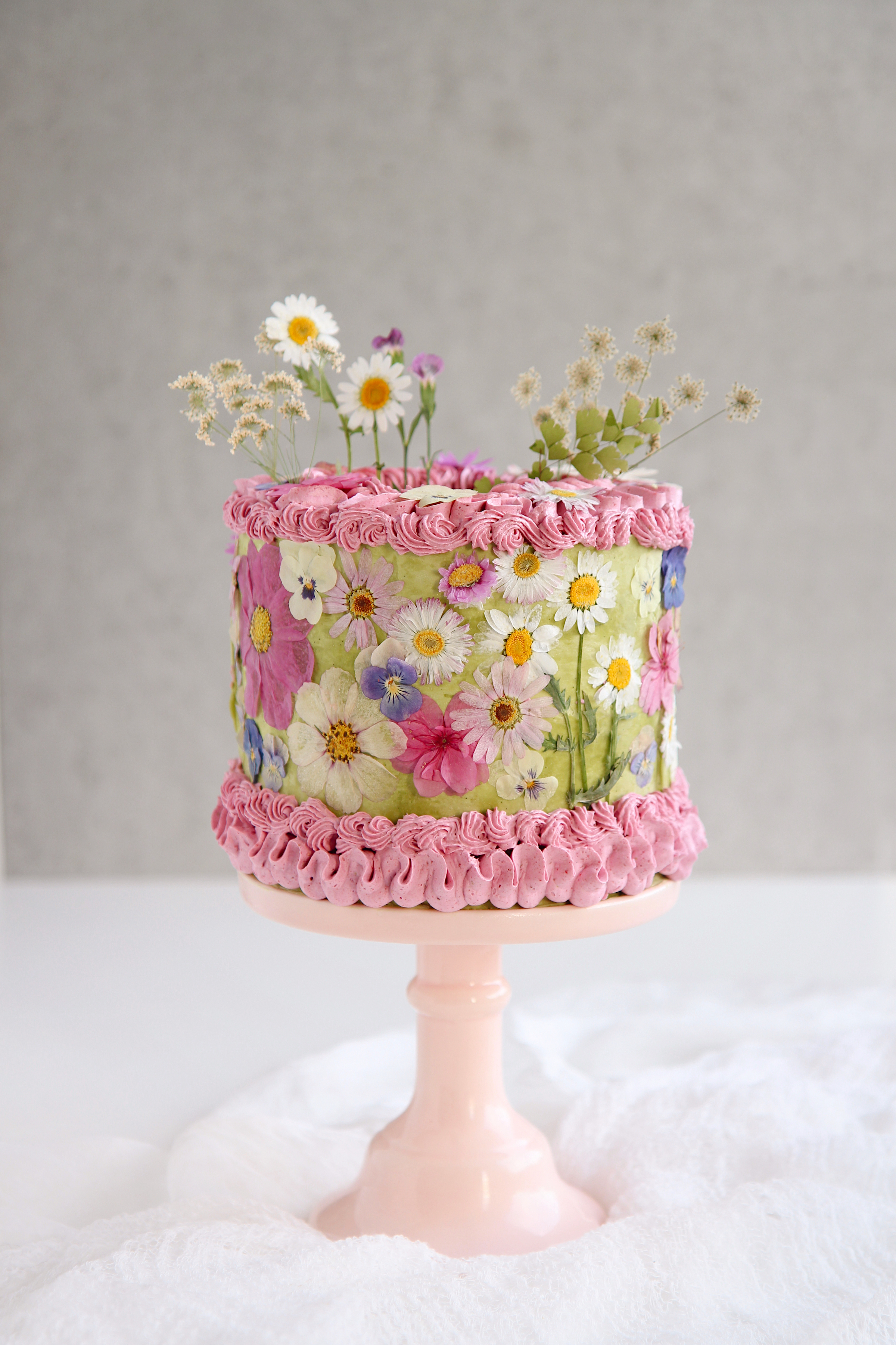 The dried flowers are from Gemini Angie Shop on Etsy. Please make sure you use edible flowers when using them to decorate a cake.