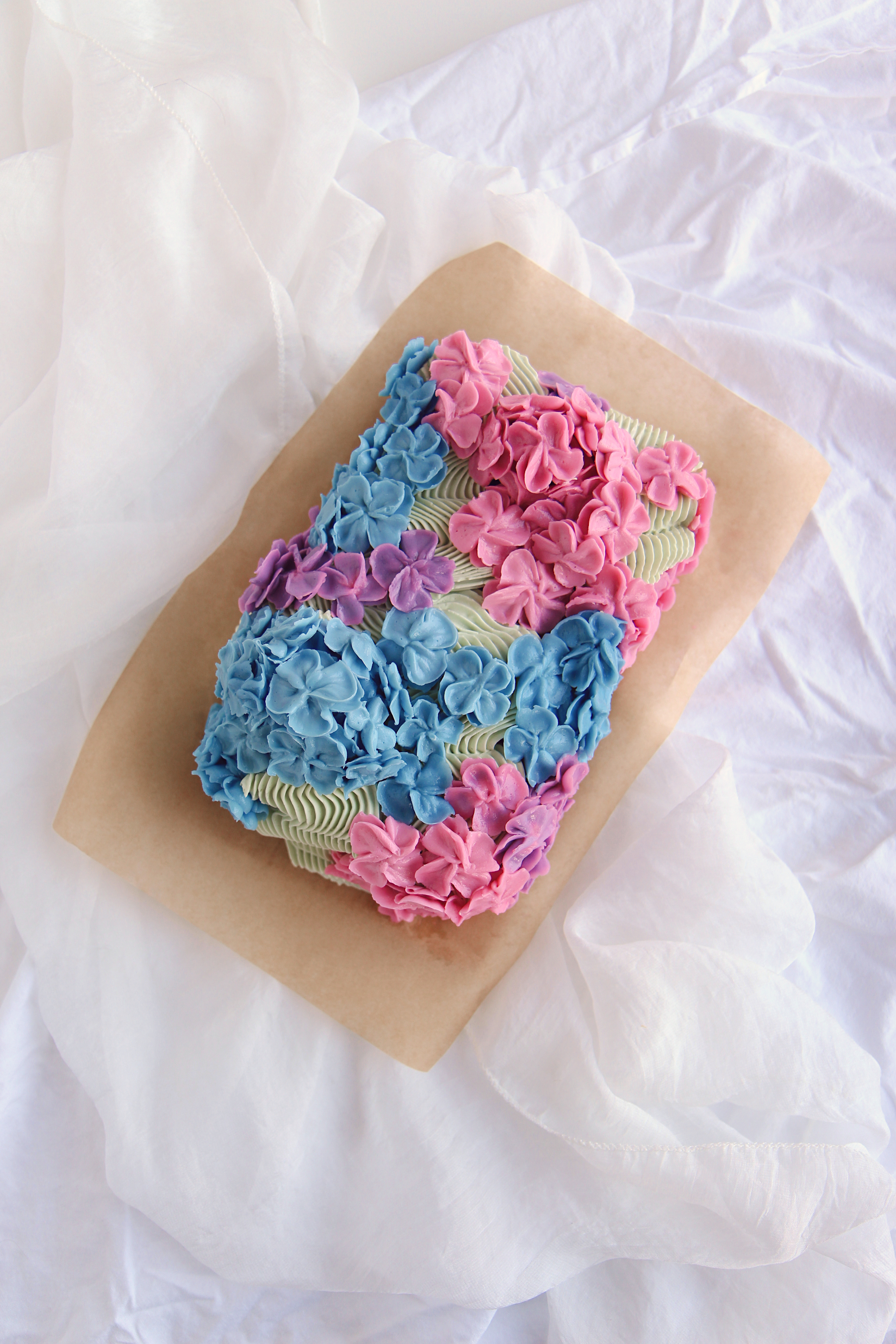 This video is a straightforward tutorial on how to pipe hydrangeas with a petal tip. I do recommend doing it on a flower nail with parchment paper and then transferring to a fridge until hard before placing on your cake. I just find hardened buttercream flowers much easier to work with and place onto the cake.