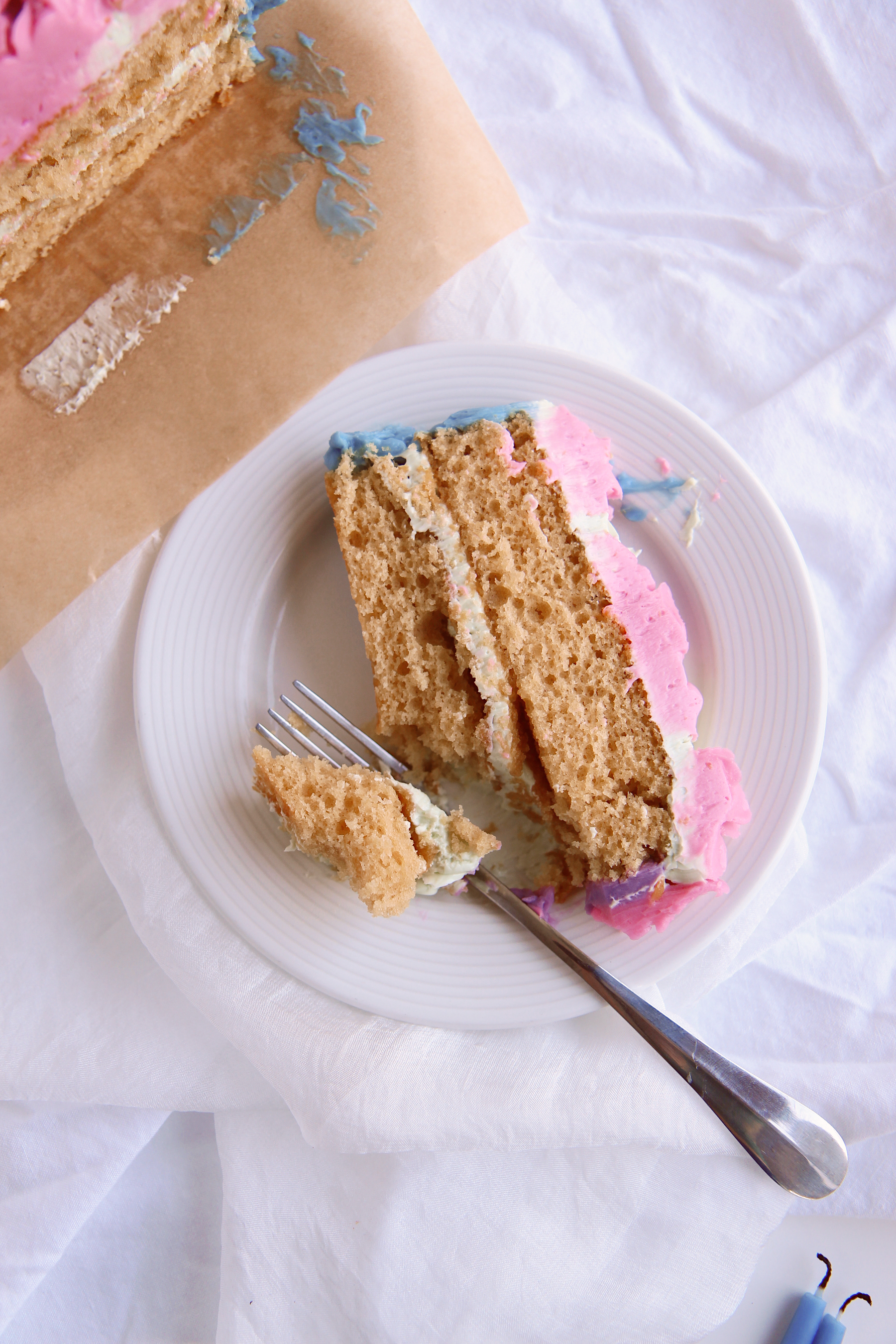 This cake utilizes deeply amber colored local clover honey to sweeten, flavor, and moisten the cake. Honey is more hygroscopic than sugar, so between itself and the buttermilk in the recipe, the cake is very soft and moist.